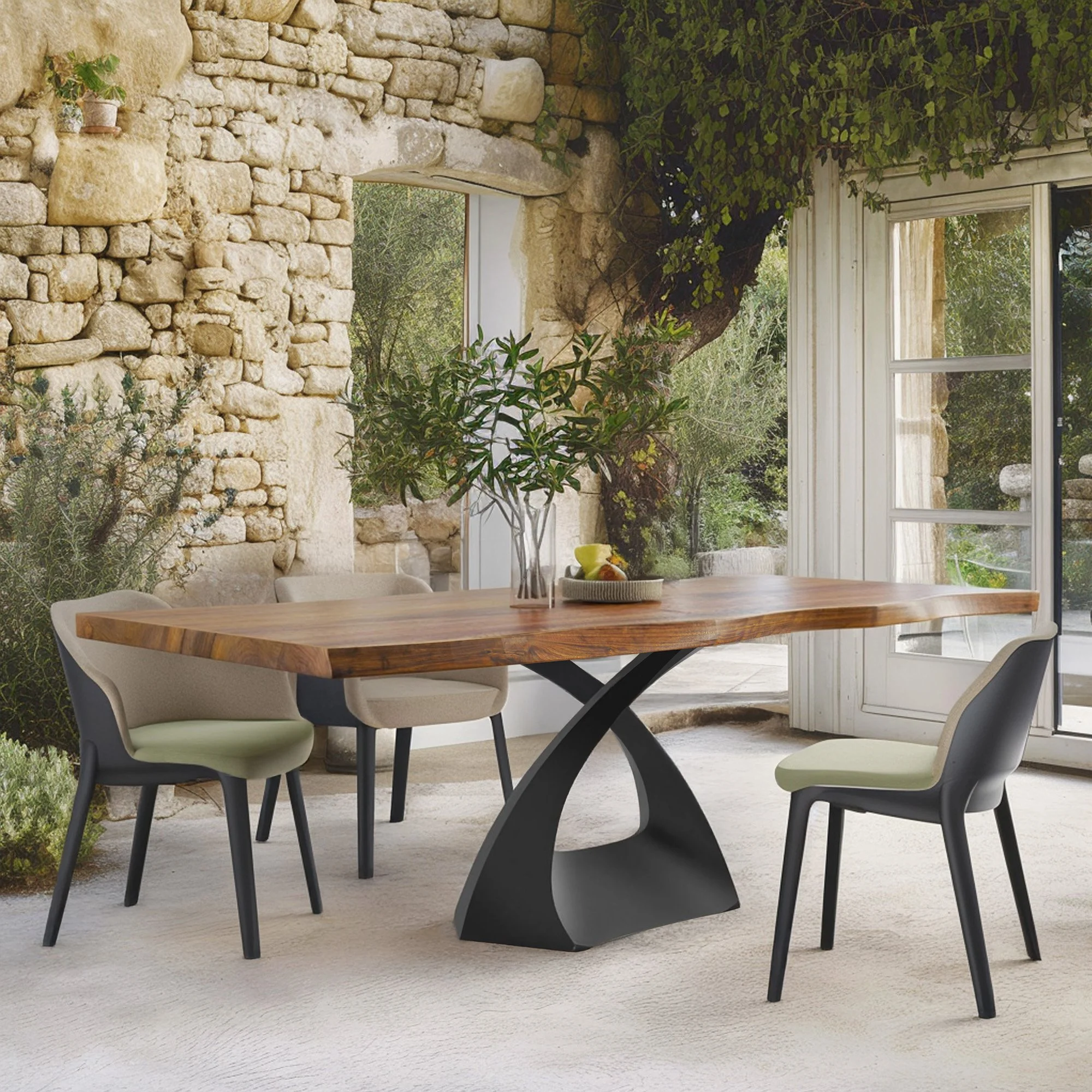 Sculptural Live-Edge Dining Table with Modern Steel Base